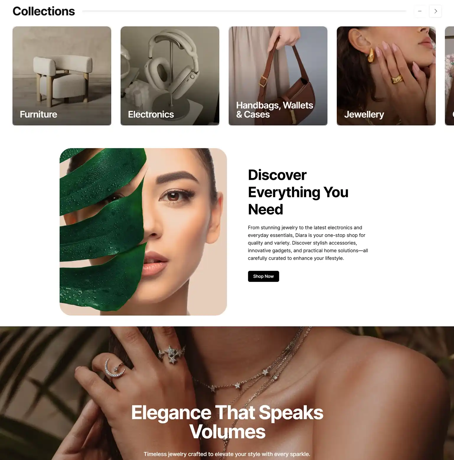 Diara is an online store offering a diverse range of products, including electronics, clothing, jewelry, handbags, and household supplies. We designed their website to provide a seamless shopping experience, featuring a clean layout, intuitive navigation, and high-quality visuals that highlight their extensive product selection.